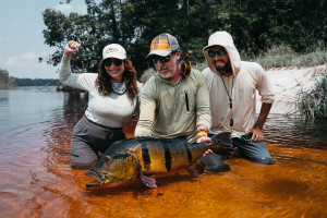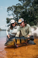 On August 25th, 2022, also on the Rio Marié, Rodrigo was fly fishing with his wife and Rio Marié head guide, Rafael Marques. On his very first cast of the day, he hooked a very strong fish. Salles was fishing with a 9wt rod and after several minutes, landed a massive 25.3 lbs. and 92 cm. giant peacock bass. This fish was massive, and turned out to be the new all-tackle length world record.