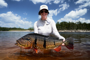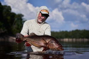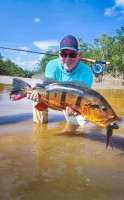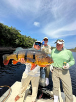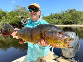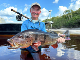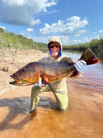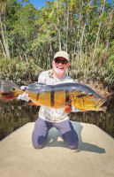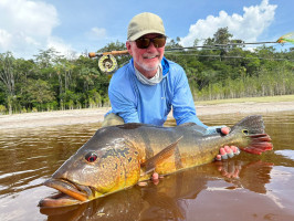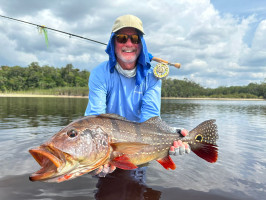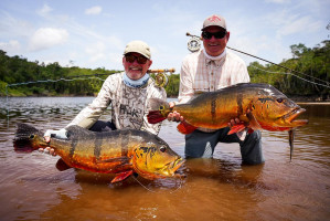 Every angler that comes to the Amazon has the dream of catching a big peacock bass over 20lbs. So imagine how thrilled Steve and his partner Michael got when they saw two monsters slowly cruising the shallows. With precise casts and perfect sight fishing conditions, both anglers put the flies where they needed to be; resulting in a historical double. Two monster fish over 20lbs of the Marie River!!