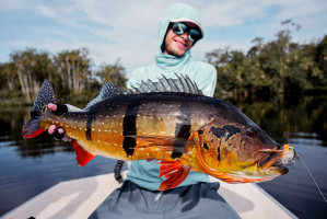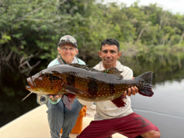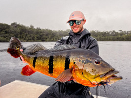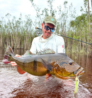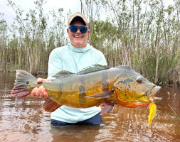 Matt: On his very first trip to the Marié, Matt joined his father and brother for a family adventure. After landing a solid 18 lb fish, his guide spotted a massive peacock bass cruising nearby.