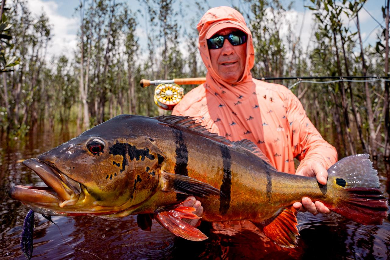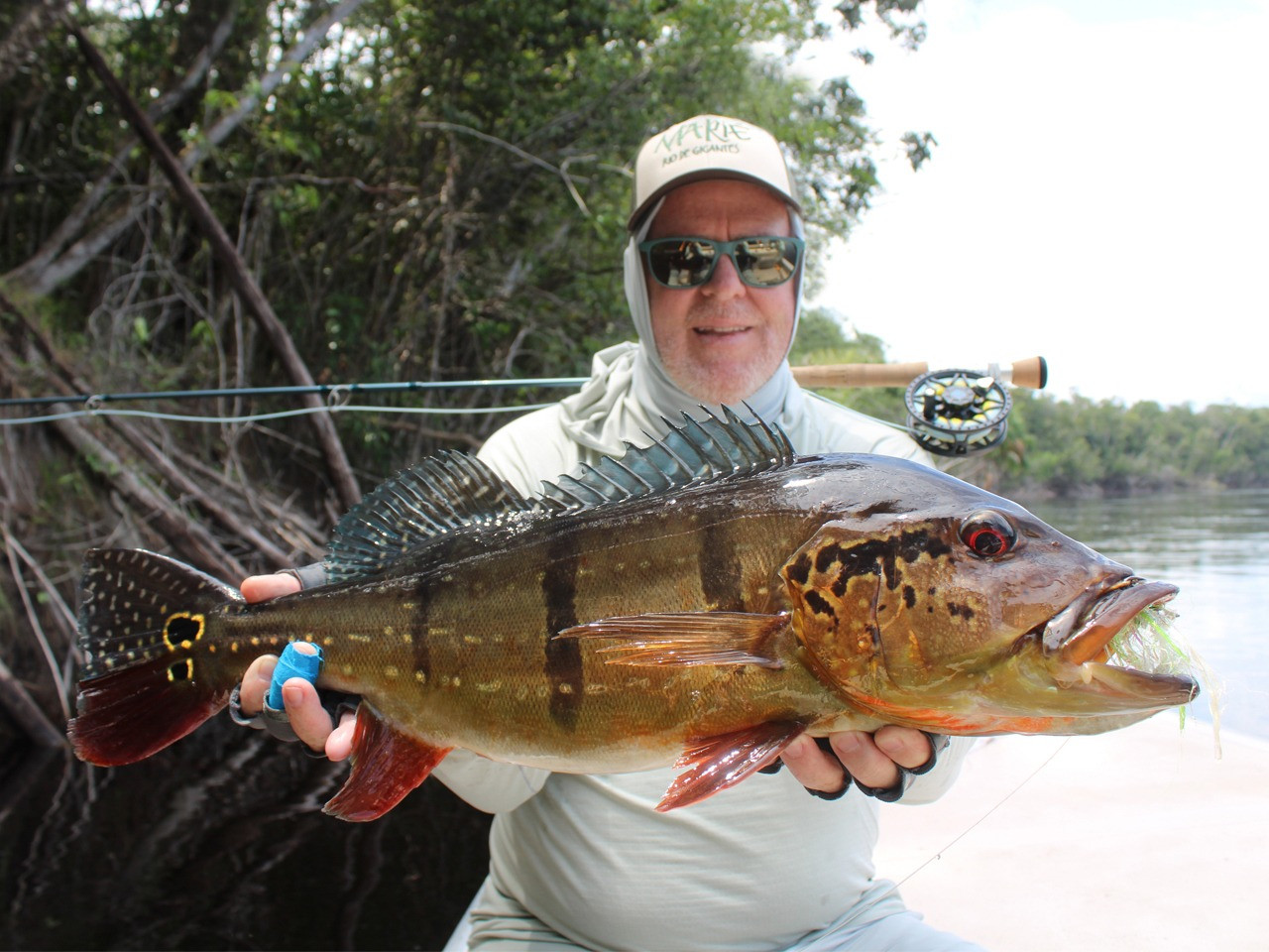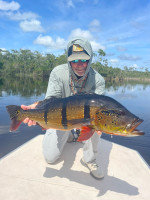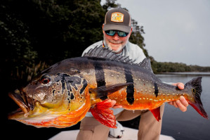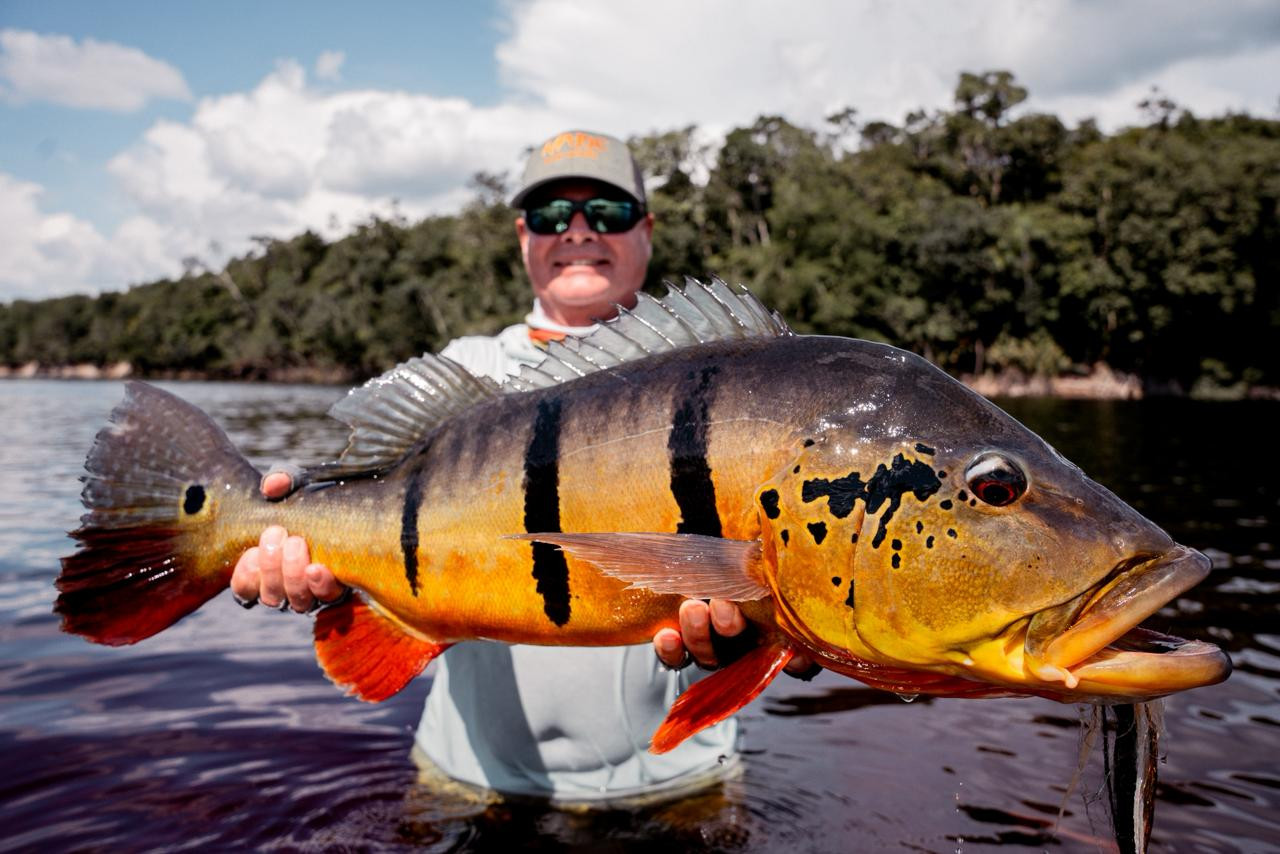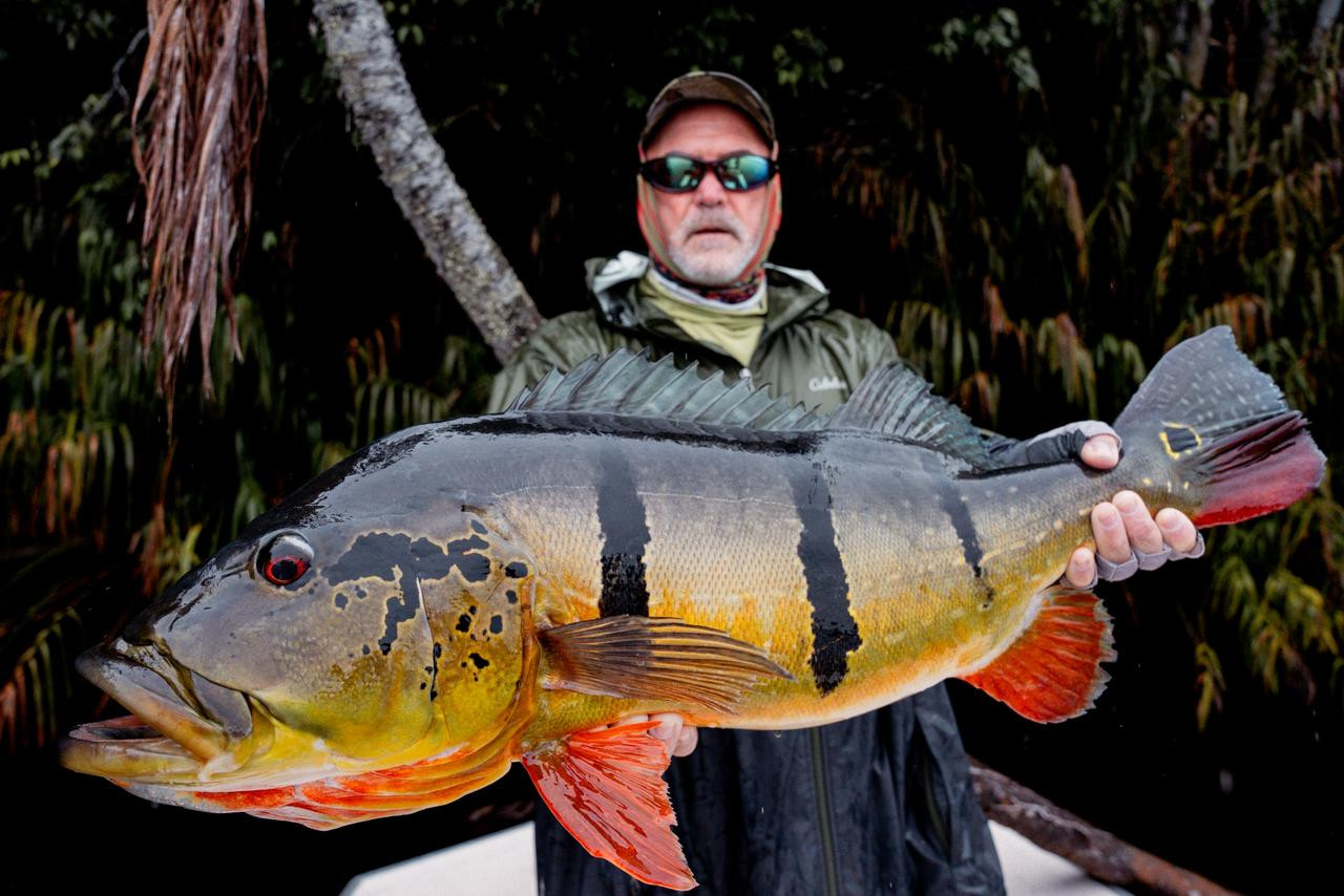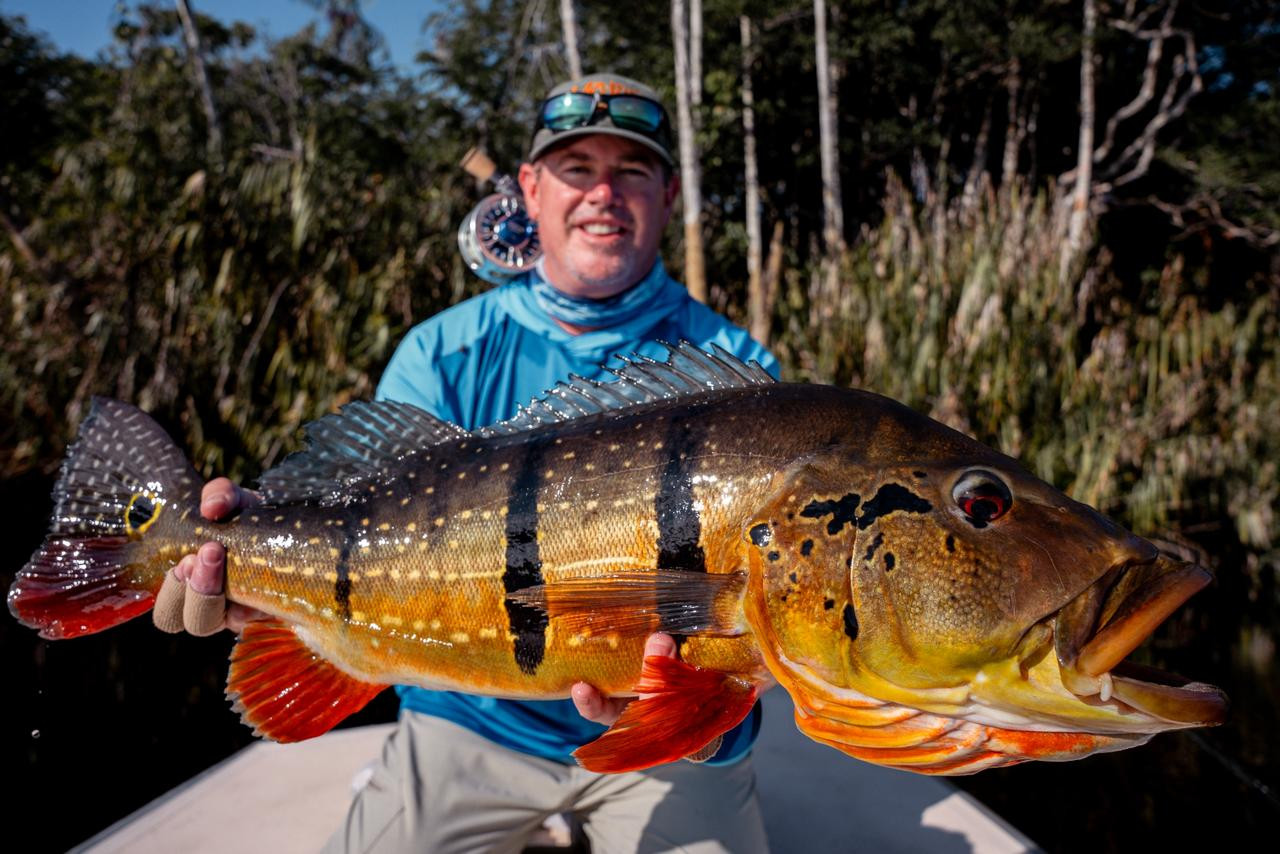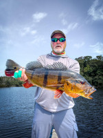Doug: El último día, lanzó por la mañana y atrapó un tucunaré de 21 lbs en su primer intento