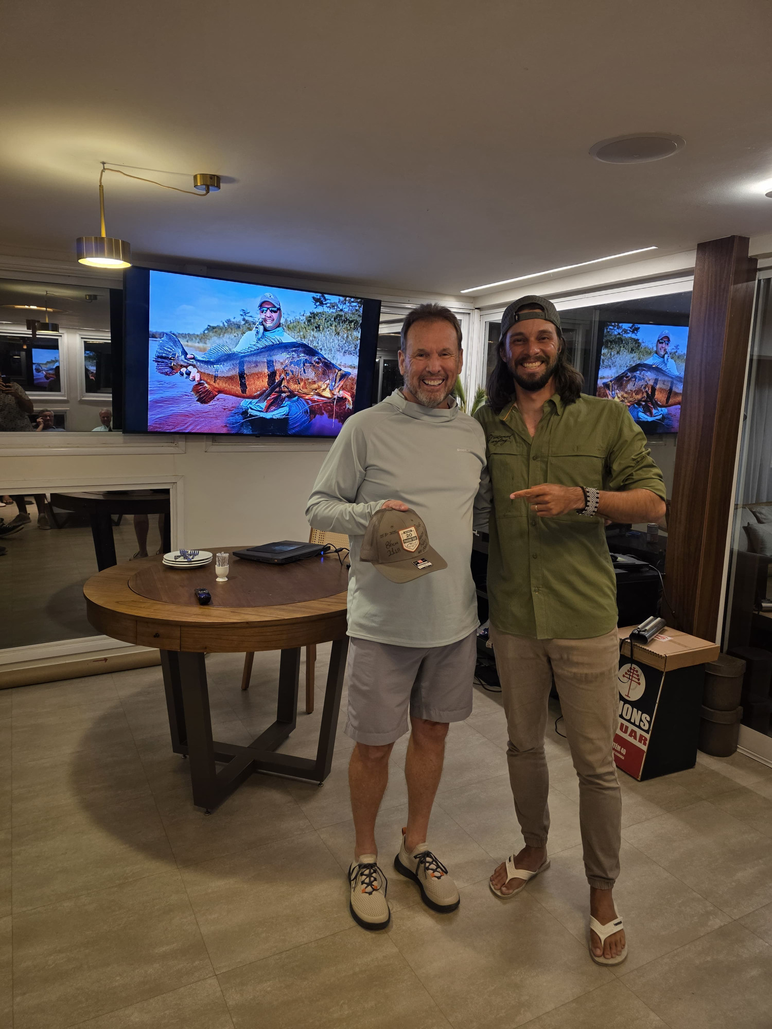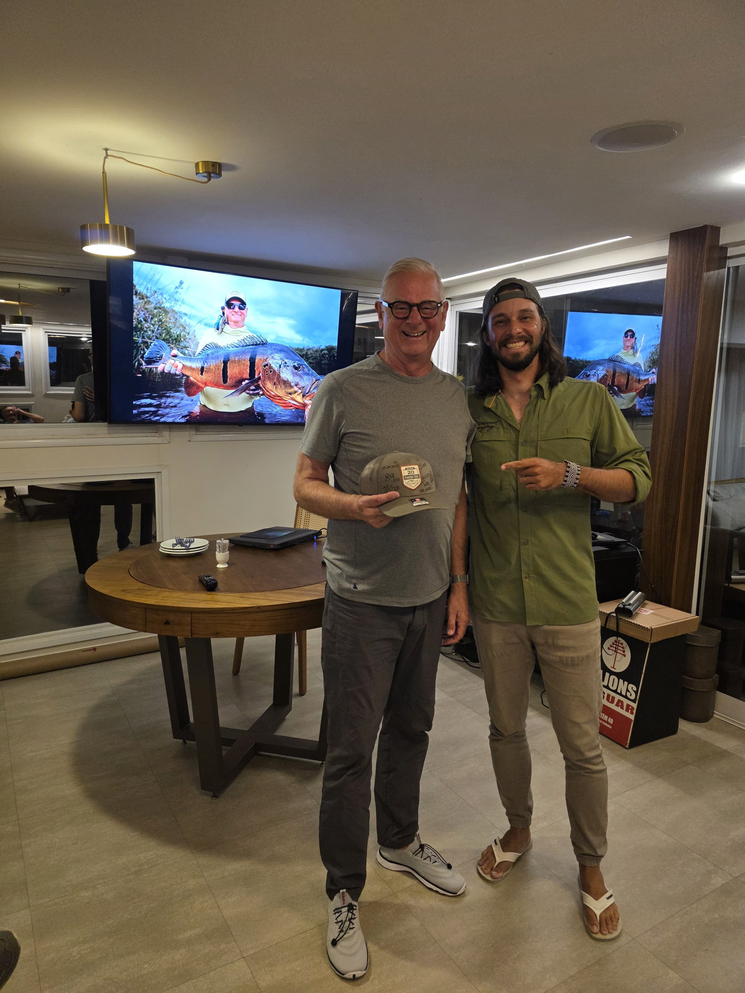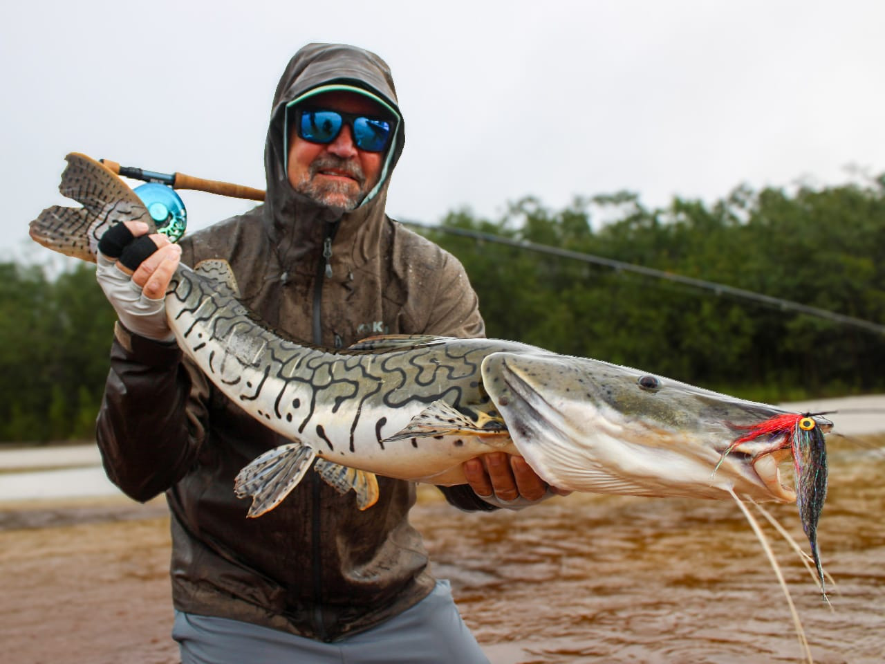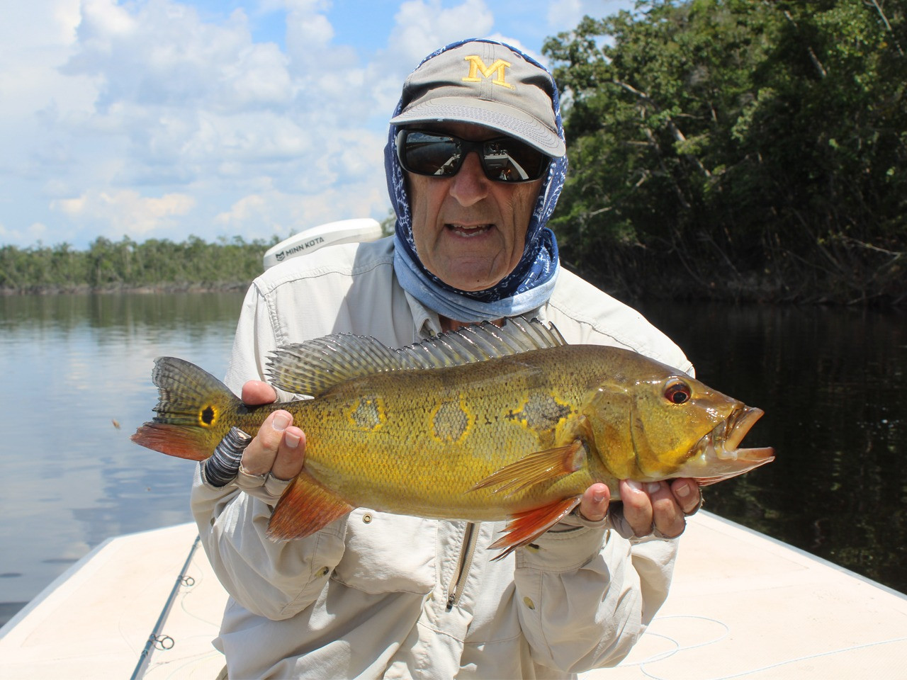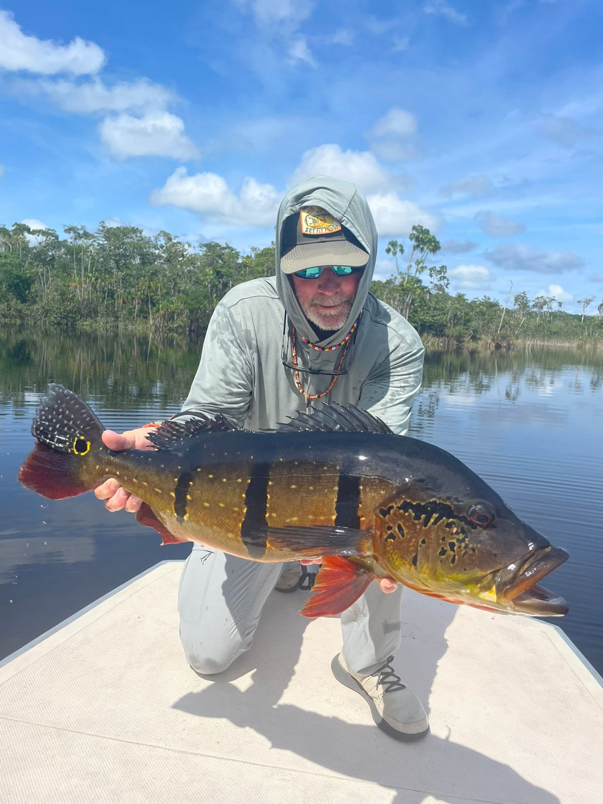 Doug: El último día, lanzó por la mañana y atrapó un tucunaré de 21 lbs en su primer intento