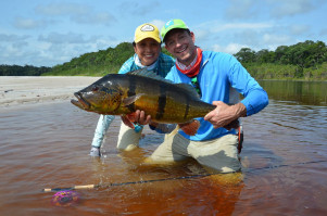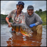 Highlight of the Week: Even with rising water during the second part of the week, Grace Lee got a monster peacock bass on popper after trying several different streamers! Well done! Another unbelievable moment was experienced by Avi and Brian Hersterman. They saw a giant harpy eagle flying and then suddenly dive fast into a tree to attack some monkeys! Photos soon! A magical moment that even Nat Geo guys can spend years to get on camera.