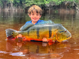 Highlight of the Week: Despite the changes in the water levels, our guests caught some great fish — and they caught a lot! Anglers landed 528 butterflies and 87 temensis that ranged from 2 to 22 pounds! Another highlight was welcoming our youngest member to the 20 Pounder Club. With the help of his father, Enrico (7 years old) landed three peacocks that were more than 20 pounds! Finally, we were excited to have well-known angler Maddie Brenneman and her fiancé and accomplished photographer Nick Kelley join us at Rio Marie. Maddie landed a giant 22-pound temensis on the last day! Epic Week!