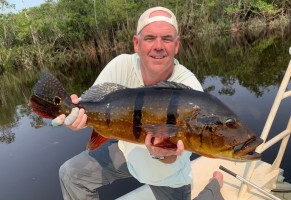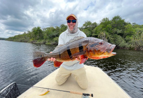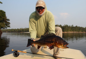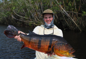 Highlights of the week: We are amazed by how good our first week was, with perfect weather and good water conditions. That, combined with a group of very good fly anglers, resulted in very impressive numbers of fish…especially big ones! With 11 fish over 20 lbs. this is our 3rd best week ever in Rio Marié. Last but not least those 3 monster fish over 20 lbs. were caught on poppers in overwhelming topwater attacks! Congrats all anglers and especially Charly who, at 17 years old, got his first 20+ pound giant bass on fly!