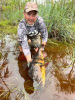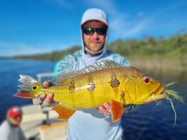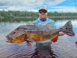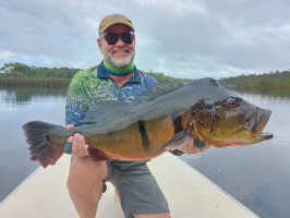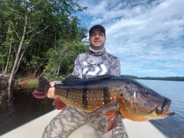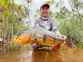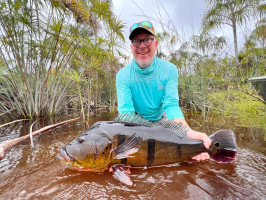 Our friend Dalmo, a Brazilian angler, returned to seek his revenge against last year’s conditions - high water and slow fishing. He saw some big fish last year, and the image of those monsters has haunted him ever since, forcing him back to the river to try his hand at catching one. The storybook ending came true, and not only did he knock those big peacock bass off his bucket list, he did so in style. On the last day of the week, he caught a monster 88 cm., 22 lbs. peacock! That is now his personal best, but we are looking forward to attempting to break it in the years to come! Congratulations, Dalmo!
