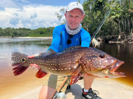 Who else wouldn’t like to catch monster peacock bass on a popper? Imagine doing that more than once and using 20 lbs. test leader? That’s what Jeff Hakarvy did! Not only did he land several big fish on poppers, but while fishing with an IGFA legal 20 lbs. class leader, Hakarvy landed a massive 89 cm. long peacock bass!