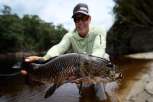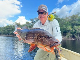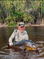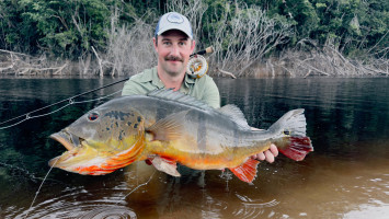 La historia de Mark inspirará a cualquier pescador. Su semana comenzó tranquilamente, pero con determinación y adaptabilidad, Mark perfeccionó su técnica para adaptarse a las exigencias únicas del río Marié. A medida que se acercaba el último día, todavía no había atrapado ninguno grande. Pero su perseverancia dio frutos espectaculares. La última tarde, cuando el viaje estaba llegando a su fin, Mark enganchó a un monstruo. La pelea fue larga y difícil, pero Mark, con las lecciones de la semana firmemente en sus manos, salió victorioso con un impresionante pavo real de 21 libras, el más grande de la semana. Un final perfecto para un viaje inolvidable.