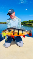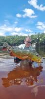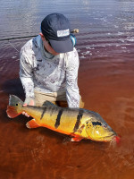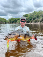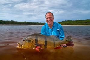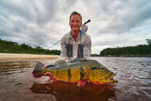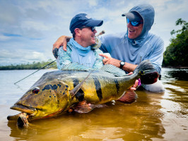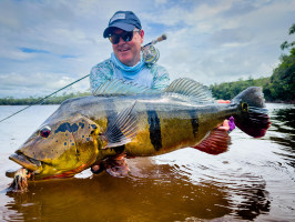 En su primer intento, un pez monstruo escupió el anzuelo; fue un golpe en el estómago, pero no lo suficiente para detenerlo. Un poco más tarde, los guías vieron otro gigante y, esta vez, Michael lo logró. Después de una intensa lucha, logró atrapar su primer pavo real, que pesaba más de 20 libras. Pero la historia no terminó allí. En su último día, pescó otra bestia, otra de 20 libras. Dos peces trofeo de por vida en una semana después de tres décadas de espera. De eso están hechos los sueños de Rio Marié.