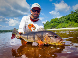 One of the most captivating moments of the week came from Raymond Malone, a returning angler who was haunted by a close encounter during the 2023 season. Last year, Ray lost a giant peacock bass when his 50lb fly line snapped, leaving him with an unforgettable tale of the one that got away. Determined to even the score, Ray came back to Rio Marié this year with a mission. Early one morning, while working a sandbar, Ray spotted a massive wake moving toward his fly. He cast confidently, and within seconds, the fight was on. Drawing on lessons from his previous battle, Ray kept his cool and expertly worked the fish until it was safely netted—a stunning 20lb temensis. Ray’s victory was not just a personal triumph but a testament to the rewards awaiting those who dare to face the challenges of Rio Marié.
