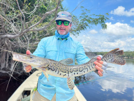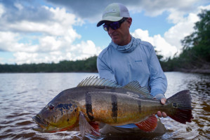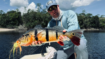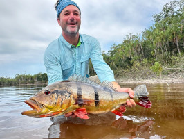 Lo más Destacado de la Semana: Una historia sobresalió entre los logros de la semana. El pescador Kieran enfrentó condiciones particularmente desafiantes: después de ver a su compañero perder tres peces grandes sucesivamente, Kieran sabía que tenía que aprovechar al máximo su oportunidad cuando avistó a un enorme tucunaré en un nido. Con los consejos expertos de su guía en mente, hizo un lanzamiento perfecto. El tucunaré se movió, tomó la mosca, y comenzó la batalla. Todas las miradas estaban puestas en Kieran mientras luchaba con el pez, sabiendo que esa podría ser su única oportunidad. La tensión era palpable, pero su experiencia y habilidad dieron fruto. Con manos firmes y un gancho bien ajustado, Kieran logró atrapar un enorme tucunaré de 9 kg, la máxima recompensa por su perseverancia.