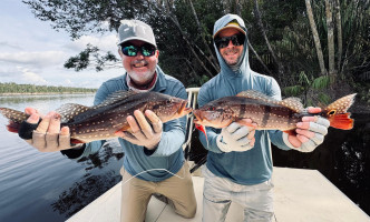 A pesar del bajo nivel del agua, el tucunaré se mostró esquivo en algunos momentos, ya que el agua turbia de los arroyos hacía que los peces fueran más cautelosos de lo habitual. Sin embargo, nuestros pescadores se mantuvieron implacables, sabiendo que cada lance podía llevar al pez de su vida. El río puso a prueba la constancia y la habilidad de quienes estaban dispuestos a superar sus límites.