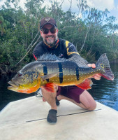 Confiar en el consejo de su guía Sérgio resultó ser un cambio de vida para Helton, quien pescó su mejor marca personal: un magnífico pavo real de 89 cm (35 pulgadas) y 22 libras. Un solo lanzamiento condujo a una pelea inolvidable y una captura de trofeo que personifica la magia del Río Marié.