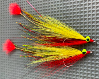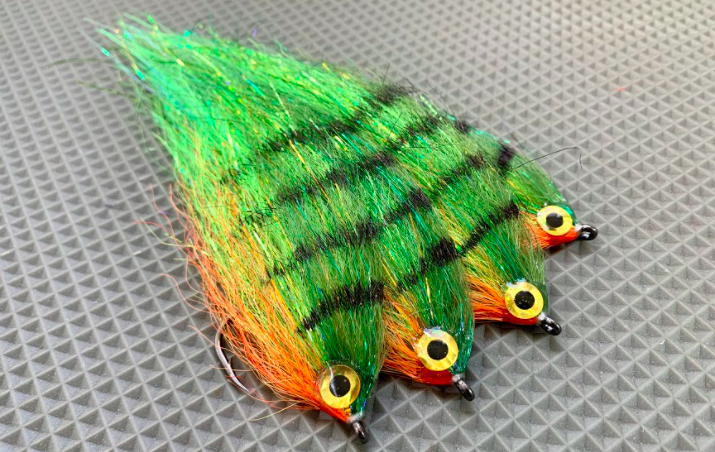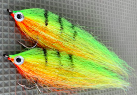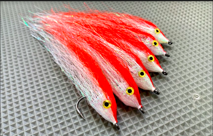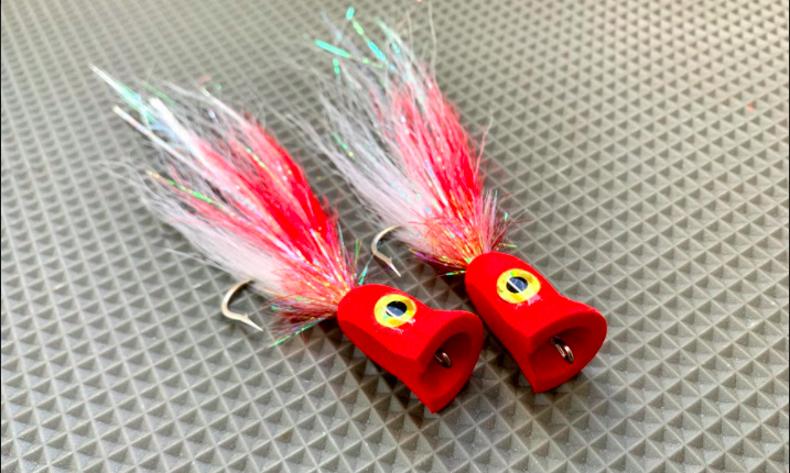 Todas las moscas de aguas superiores, como los grandes poppers de espuma, los poppers NYAP (4/0 a 6/0), los Pole Dancers (3/0 a 6/0) y los divers son divertidos de pescar y deben incluirse.