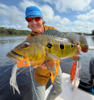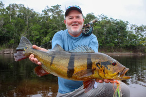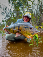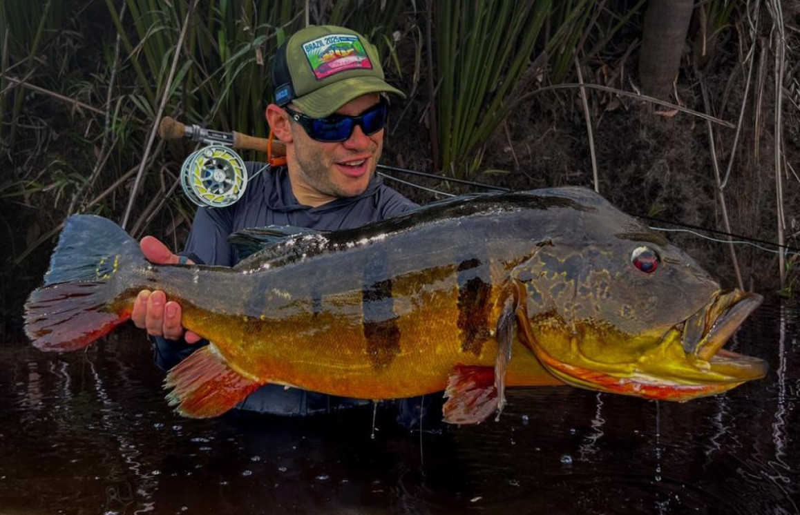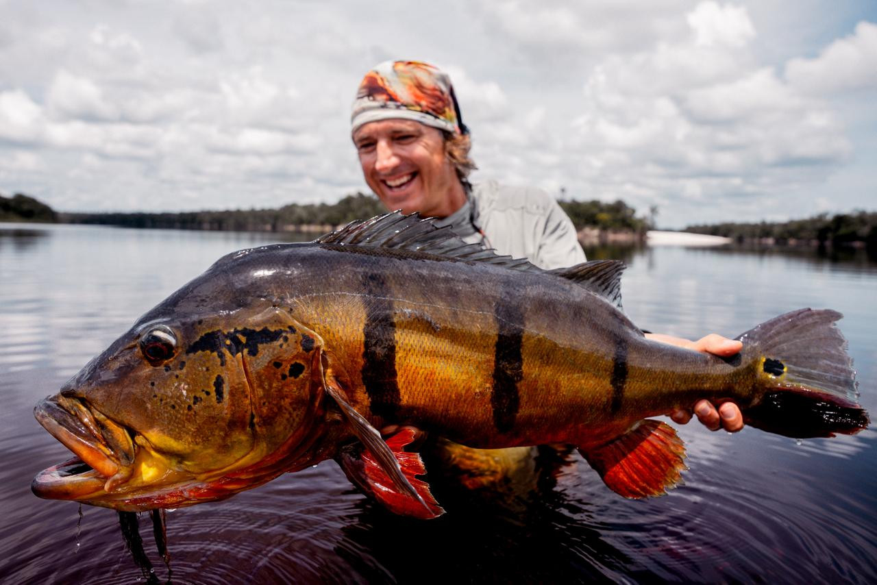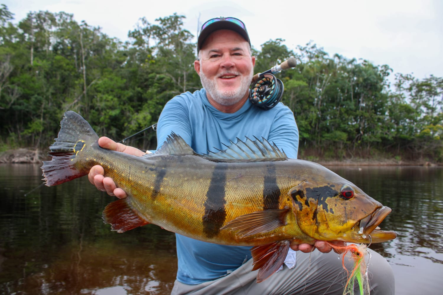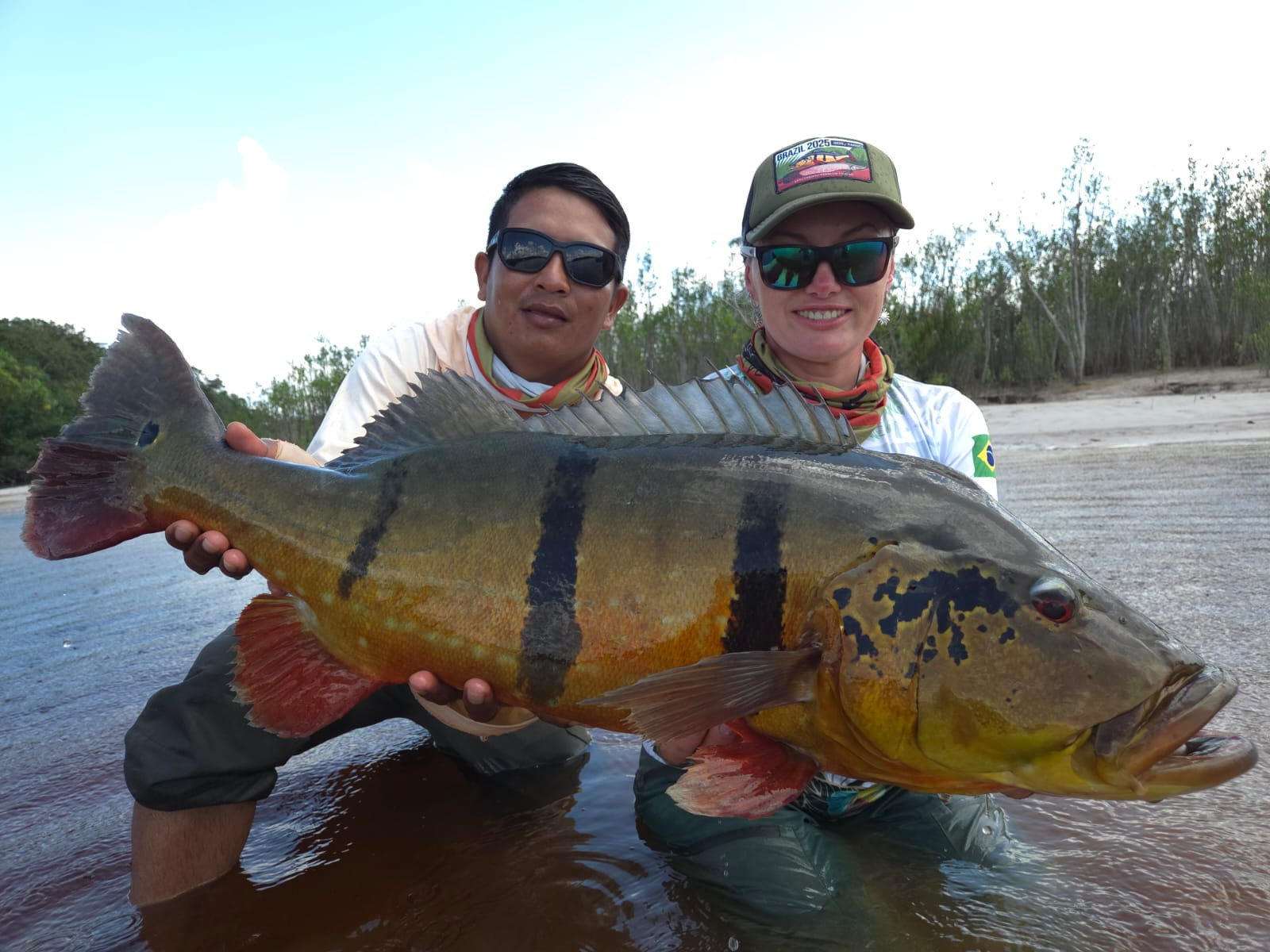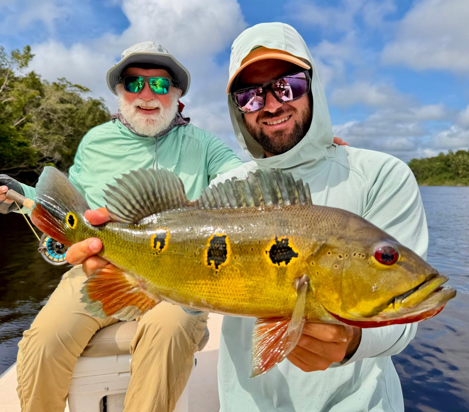 Pavel’s first fish of the trip made an immediate statement. A crushing eat on the fly led to a heavy, controlled battle and a clean finish at the net — a pristine 20 lb peacock bass to start his Marié adventure.