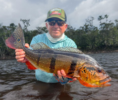 Experienced with peacock bass but new to the Marié’s power, Daniel opened his week on the fly rod with a decisive take and a relentless fight, bringing a 22 lb trophy to hand — a benchmark far beyond anything he had seen elsewhere.