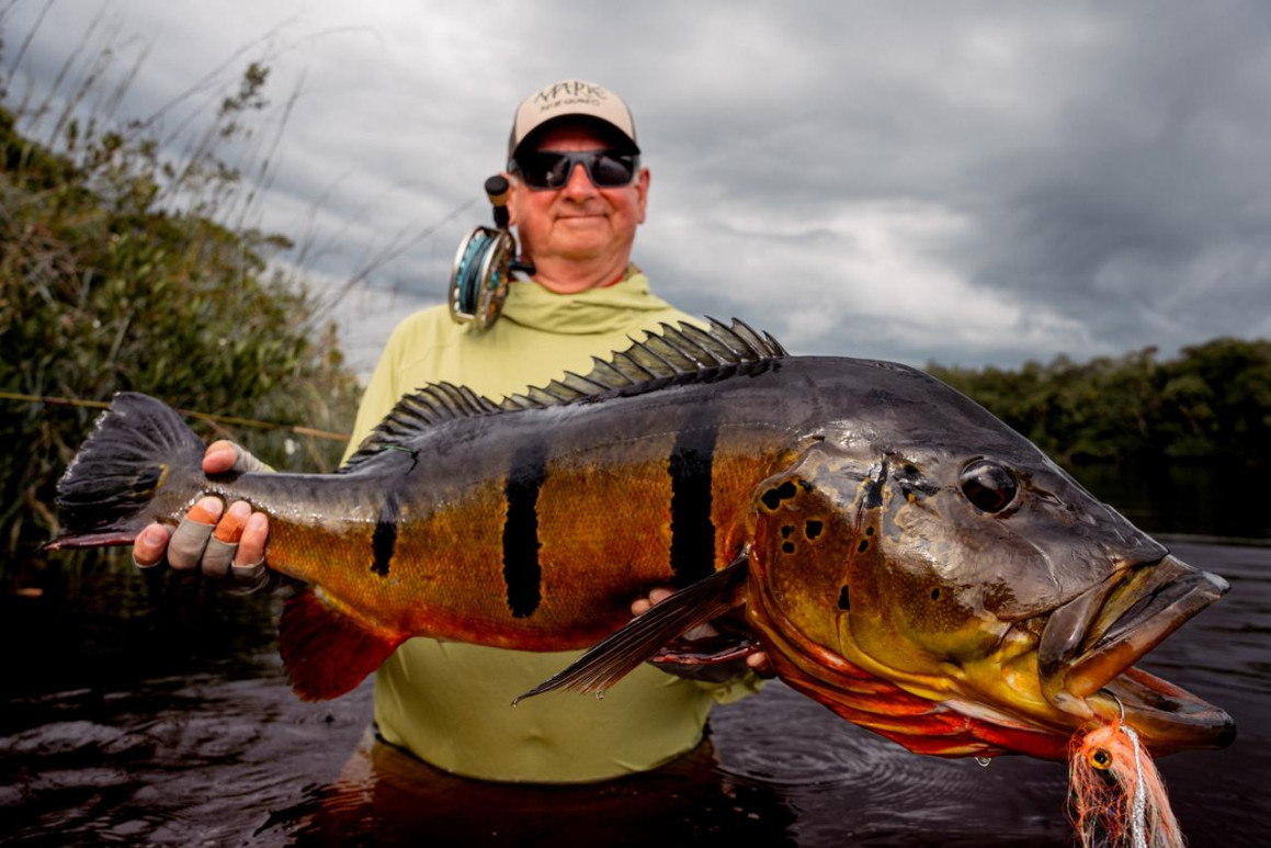 Doug: On the final day, Doug still hadn’t landed his trophy. But a giant crushed his fly on his very first morning cast. The fight was short, powerful, and decisive — a 21 lb peacock bass in the net. With his goal achieved, Doug spent the rest of the day celebrating his partner’s success — a true example of teamwork on the water.