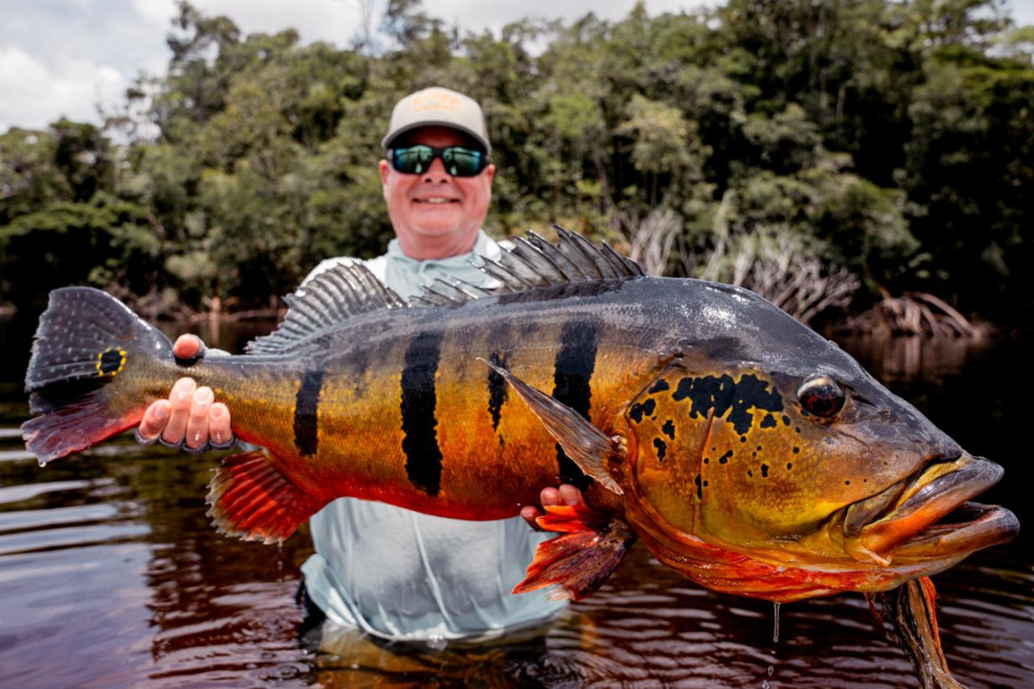 Rob: A seasoned traveler searching for big fish, Rob came to the Marié with one goal — and achieved it in spectacular fashion. After watching his partner land a nice one, he knew it was his turn. Moments later, a violent strike sent his line screaming into the backing. Staying calm, he controlled the chaos and brought to hand an 89 cm, 23 lb peacock bass— the monster he came for.