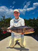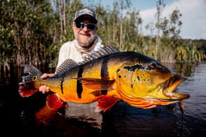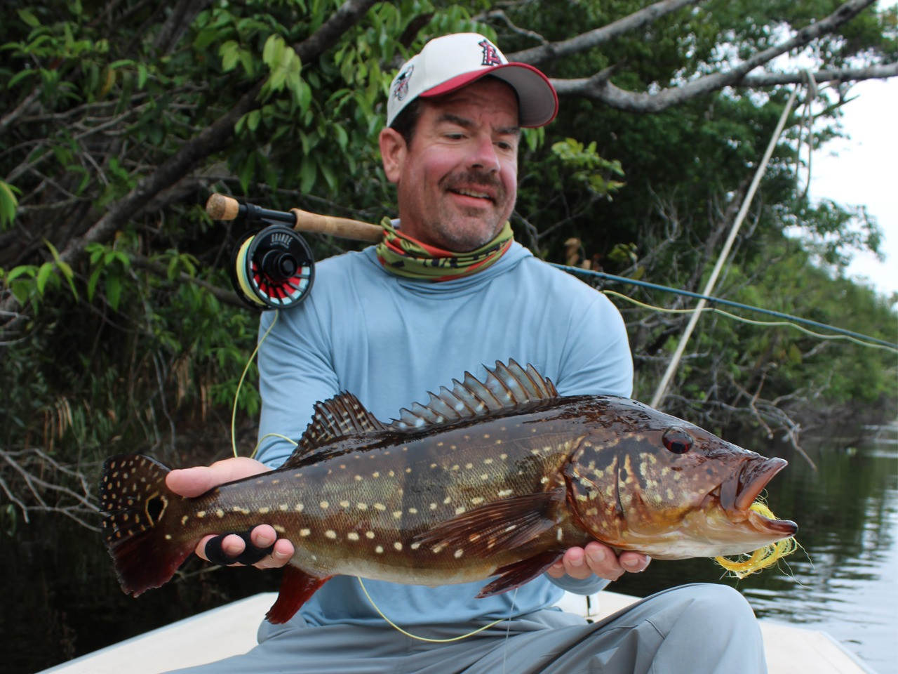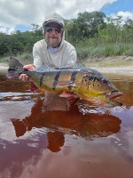 Rusty: The morning began like any other, but destiny had other plans. Entering a lagoon, his guide noticed a large wake and signaled. Rusty’s cast was perfect, and the strike came instantly. The fish ripped through the fly line deep into the backing, forcing his guide to fire up the outboard to keep it away from the shore. After a dramatic fight, the giant was finally secured: a 91 cm peacock bass, marking the 10th fish over 90 cm of the season. An achievement that will be remembered.