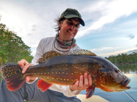 The fishing conditions were a challenge, but our guests pushed through and had a great week! One guest who had never fly fished before caught his first fish on the fly as well as a good number of peacock bass. And among other highlights, Mitch caught a 23.5-pound giant!