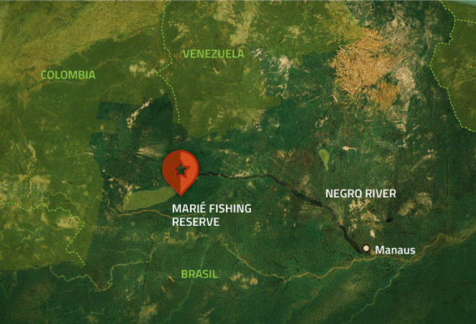 A operação de pesca do Rio Marié utiliza uma área de mais de 2 milhões de hectares. Este ambiente intocado possui mais de 800 quilômetros de rios, mais de 180 igarapes, 60 lagos, inúmeras baías e ressacas e três grandes afluentes. Certamente não há escassez de água para nos manter ocupados perseguindo peixes que raramente veem pescadores, muito menos humanos. Não exisite nenhum assentamento humano na área de pesca do Rio Marié.