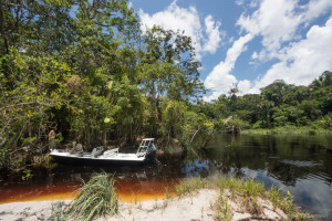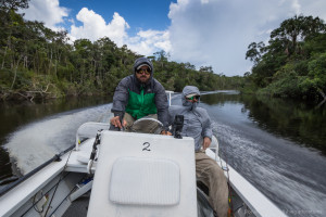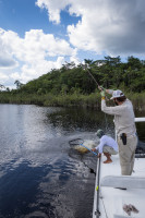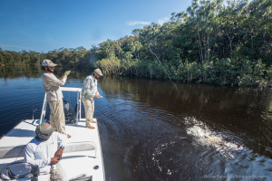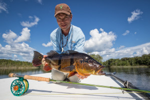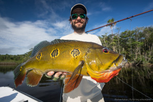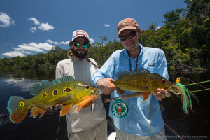 (Text Florian Kaiser; Pics Florian Kaiser und Breno Ballesteros Rezende) Florian Kaiser and Breno Ballesteros spend a unique week jungle angling Rio Mari? in the Amazon Basin of Brazil with Untamed Angling during the 2016/ 2017 season.?We will be featuring Florian?s travelogue of his angling ventures in a seven-part travel journal. This is the last part seven ? make sure you have a look on the six parts before! We had one more day to fish the next day. To reach fresh water and new grounds to explore, Untamed Amazon did move upriver again during dinner. That is an awesome experience ? you enjoy dinner, sip a decent well-tempered Argentinian Malbec and in the background of the big panoramic windows of the dining room the virgin jungle passes by! That is just surreal. If you experience that you have to be happy. Thus the next day we would have fresh water to explore. The vessel anchored close to the entrance of a smaller creek. A creek that was only fished before during the exploration season in 2014. Next morning we would fish kind of truly virgin water again! Next morning was we went that tributary upriver the thought of being one of very few humans that fished and visited that place was overwhelming. I got goose bumps at every bend of that small creek! Loved it! Fishing was mixed to good. We found a couple of pots and spots of several Butterflies. Breno checked in again for the larger sized 4-7lbs fish and I for the smaller ones. At the end of the day we would have caught more than 40 Butterflies. Had a nice fish barbecue with some bees flying around and went back to the main river and upstream after the lunch to spend our last hours fishing at Rio Mari?. As if the fishing god was close to us we both landed a good sized GPB to end that trip. Breno got a good fish of 76cm and around 16lbs and I caught a smaller one to finish the trip of something of around 70cm and 13-14lbs. It might sound snobbish, but a fish below 15lbs is just nothing to special at Rio Mari? so you might to easily forget the precise figures. Last cast, very last cast, final cast. That was Rio Mari?! Summary: I got the unofficial world record with the biggest GPB ever caught on fly up to date (28,5lbs), got another fish of 23lbs and had an awesome time with my friend Breno, the Russian team and the lovely crew. The experience was just marvelous and will last very long. Thank you for all that! Thank you to ALL on site, back home and elsewhere that made this trip such a blast! If you are in pursuit of GPB with the barbless fly, Rio Mari? is the ultimate place to go. You will have the very best chance to catch a fish beyond the magic 20lbs mark. The whole setting is marvelous! The fishing is kind of work and does not provide the visual appeal of NZ trout fishing in gin clear water or the crazy stuff you might experience fishing for Golden Dorado. You must bring determination and perseverance and fitness. But if you are interested in the best fishing GPB-destination possible combined with perfect logistics and lodging: book your slot now! You might experience one of your best fishing days and will fish one of the very last virgin spots on this globe. Questions of any kind (tackle, background, booking, advice, ?)? Contact me. If you like what you read: share it via social media and tell your fishing buddies and send me a note! If you are interested in a trip to Rio Mari? for Giant Peacock Bass contact me or Untamed Angling ? Florian, fly fishing since twenty five years in the northern and southern hemisphere in fresh- and saltwater for many species. Enjoying outdoor sports, mountain biking, photography and good wine. Fly fishing is only one of his hobbies, but the one he kind of loves most. Florian is European Ambassador of Thomas & Thomas, Pro Staff of World Fly Angler (leading distributor of fly tackle and top line brands in Europe) and of Marlo Reels from Hamburg/ Germany.