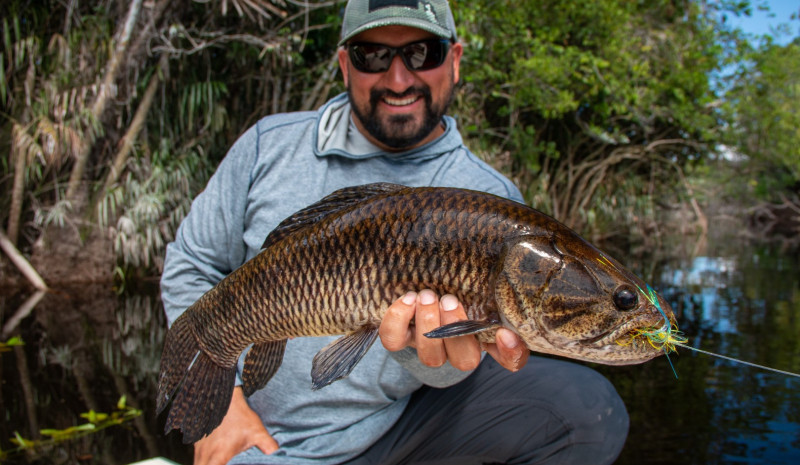 Uma das coisas realmente fascinantes sobre a comunidade indígena do rio Marié é a tradição local de pescar tucunarés com mosca. De fato, o que foi descoberto sobre a pesca com mosca de tucunaré pode fazer com que os historiadores da pesca revisem suas teorias sobre quem realmente inventou o esporte e quando. É concebível que alguma reavaliação seja necessária em relação aos primeiros praticantes da pesca Tenkara. A Untamed Angling, ao que parece, descobriu evidências de que os povos indígenas aqui usavam, como eles chamam, moscas pinawaca, feitas de tiras de fibras vegetais para atrair e pegar tucunarés.