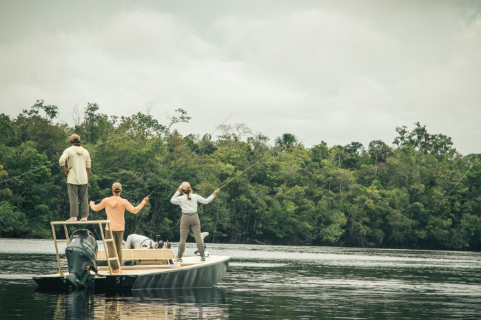 Os hóspedes são guiados por uma das melhores equipes de especialistas em pesca esportiva de classe mundial. Guias indígenas locais que conhecem cada centímetro de água o ajudarão a guiá-lo até as áreas com os maiores tucunarés. Consideramos nossa equipe de guias, a tropa de elite do tucunaré; uma equipe de guias altamente treinados, profissionais e experientes, amparados por conhecimentos ancestrais e equipados com métodos e tecnologia de ponta para realmente te fazer pescar. Com dois guias por lancha, levamos ao cliente a uma experiência superior. A união do conhecimento técnico com o conhecimento ancestral faz a diferença para a pesca dos grandes tucunarés.