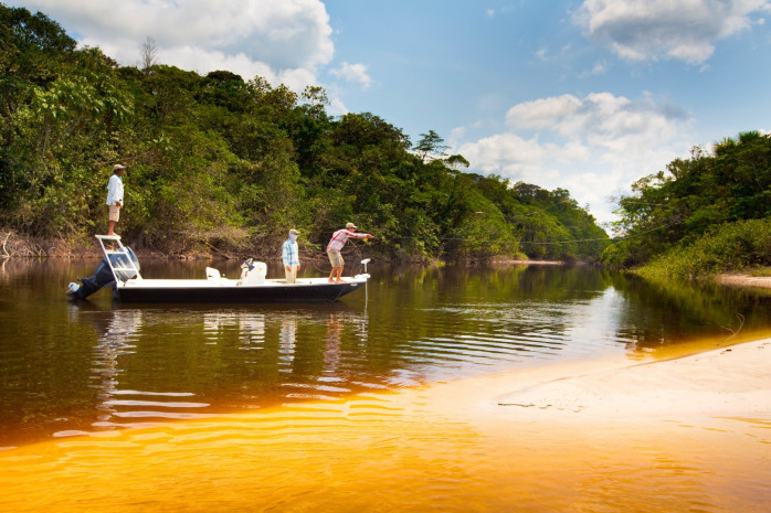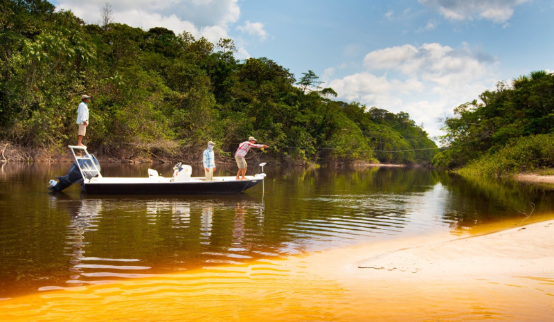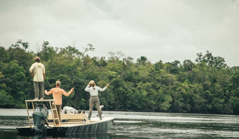 Nossa temporada de pesca normalmente vai do final de julho até o início de janeiro. Esse é o período de seca na parte superior da Bacia do Rio Negro, quando o nível da água está mais baixo. Os fluxos regulares permitem que pesquemos em todo o sistema fluvial, incluindo seus numerosos afluentes e lagoas. As áreas de pesca da Bacia do Rio Negro são amplamente reconhecidas como dinâmicas, provavelmente em razão dos ciclos hidrológicos anuais. Devido à sua localização geográfica e à imensidão de sua drenagem, o Rio Marié é muito mais consistente e previsível do que outros destinos da região.